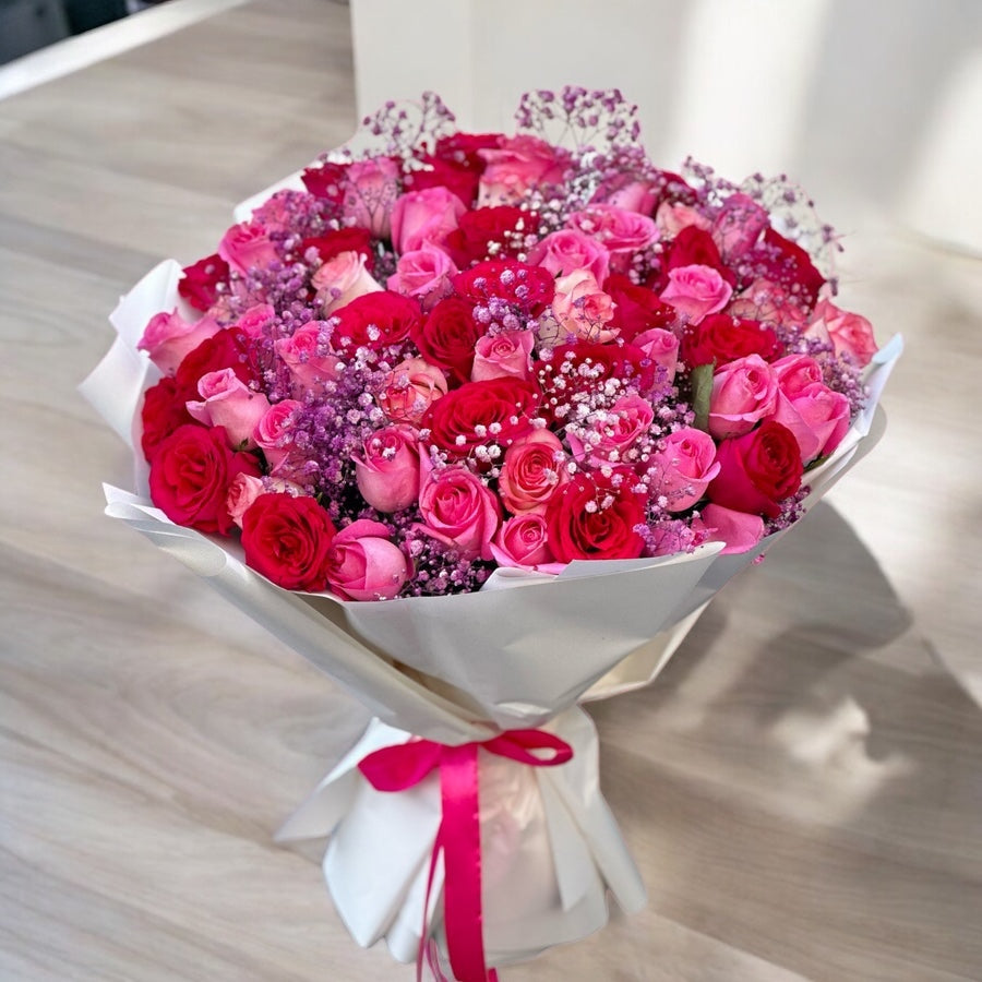 Make this Valentine's Day extra special with the exquisite and vibrant Valentine's Day bouquets from Blush And Petals Flower Shop. Celebrate love and romance by surprising your significant other with a stunning arrangement of Roses flower bouquets, crafted with utmost care and attention to detail. Our online store offers a wide selection of beautifully arranged bouquets that are guaranteed to convey your deepest emotions. With our same-day flower delivery service in Dubai & UAE wide, you can rest assured that your gift will arrive fresh and on time, adding an element of surprise to this joyous occasion. Let the fragrance of these enchanting blooms fill the air as you express your love in the most elegant way possible through our exceptional floral creations. Make this Valentine's Day special with Blush Petals Flower shop! Choose from our wide selection of beautiful bouquets and surprise your loved one with a gift they'll never forget. Order now to buy Valentine's Day Bouquets!