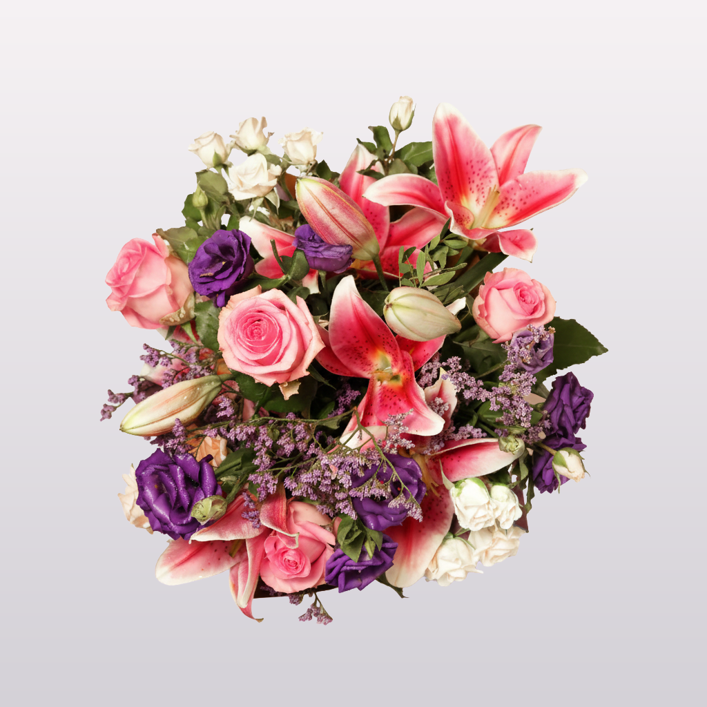 Mark life’s proudest moments with Color Bloom, a joyful congratulatory bouquet designed to impress. Featuring radiant pink lilies, charming pink roses, delicate baby white roses, and graceful lisianthus, accented with limonium and fresh pistacia, this vibrant arrangement is a true symbol of success and happiness. Handcrafted in Dubai, it’s the perfect gift to celebrate achievements, promotions, graduations, and more — with same-day delivery for your heartfelt wishes.