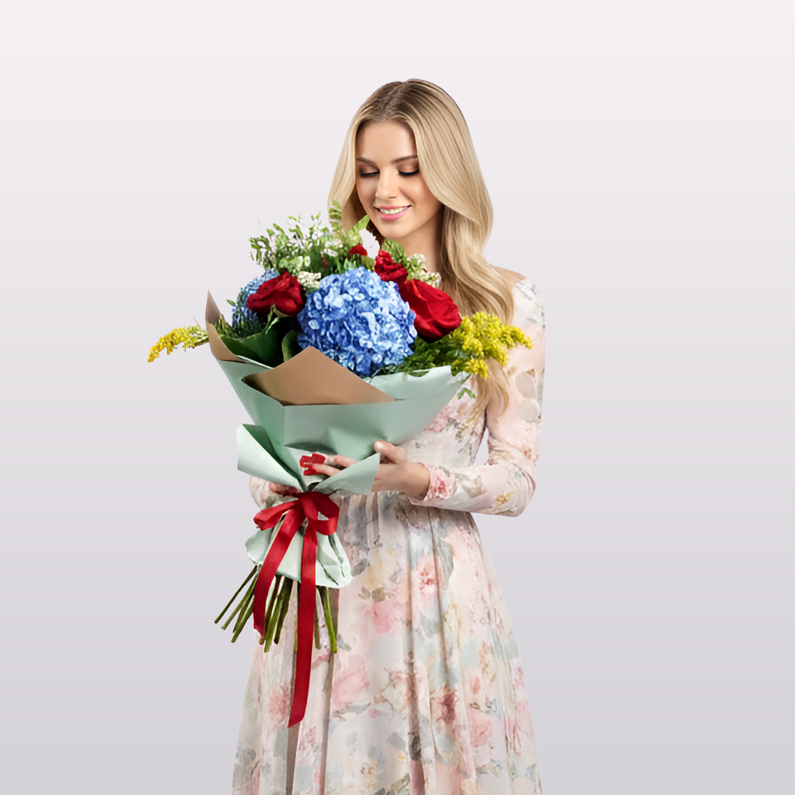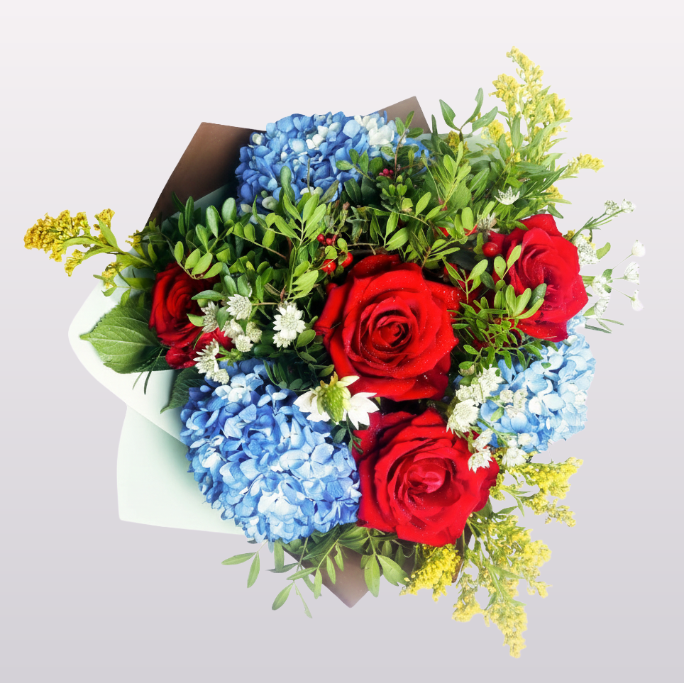 Celebrate strength, love, and admiration with the My Hero Bouquet, a bold and elegant floral arrangement available for flower delivery in Dubai. Designed to make a powerful statement, this bouquet features premium red roses symbolizing love and courage, beautifully paired with blue hydrangeas that represent trust, loyalty, and strength.
