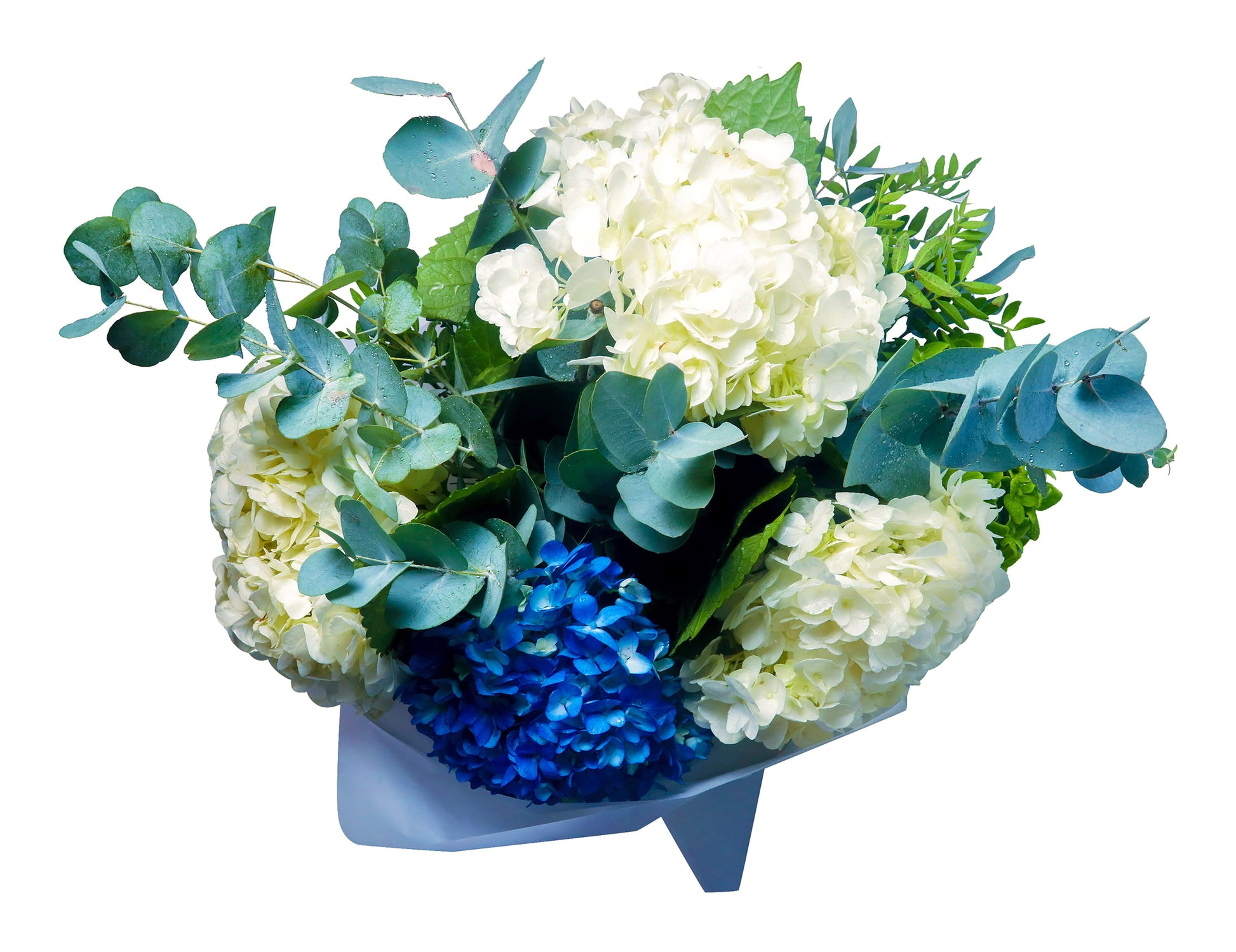Show Dad he’s the best with #1 Dad — a fresh and modern bouquet featuring 3 crisp white hydrangeas, 1 striking blue hydrangea, and lush greenery with eucalyptus and pistacia leaves. This clean, masculine arrangement is perfect for Father’s Day, combining elegance with a touch of nature. A heartfelt way to say “Thank you” and “I appreciate you.” Same-day delivery available in Dubai.