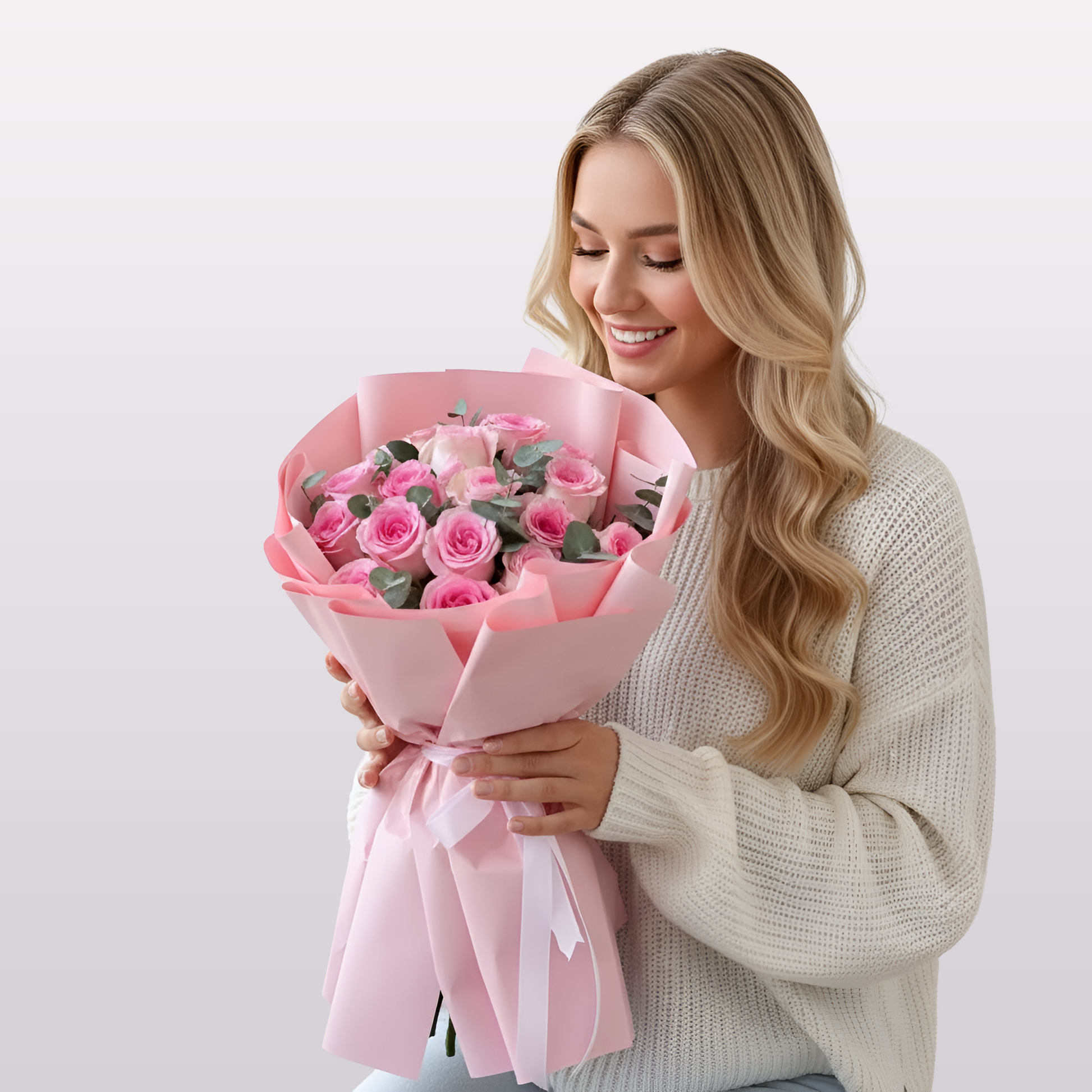 Celebrate timeless elegance with the Infinite Petals Bouquet, featuring 20 fresh pink roses paired with soft eucalyptus leaves. Expertly arranged and wrapped in luxurious pink paper with a satin ribbon, this bouquet radiates love, grace, and sophistication. Perfect for anniversaries, birthdays, Valentine’s Day, or simply to say “I love you,” Infinite Petals is a heartfelt gift that will be remembered forever. Available for same-day flower delivery in Dubai.