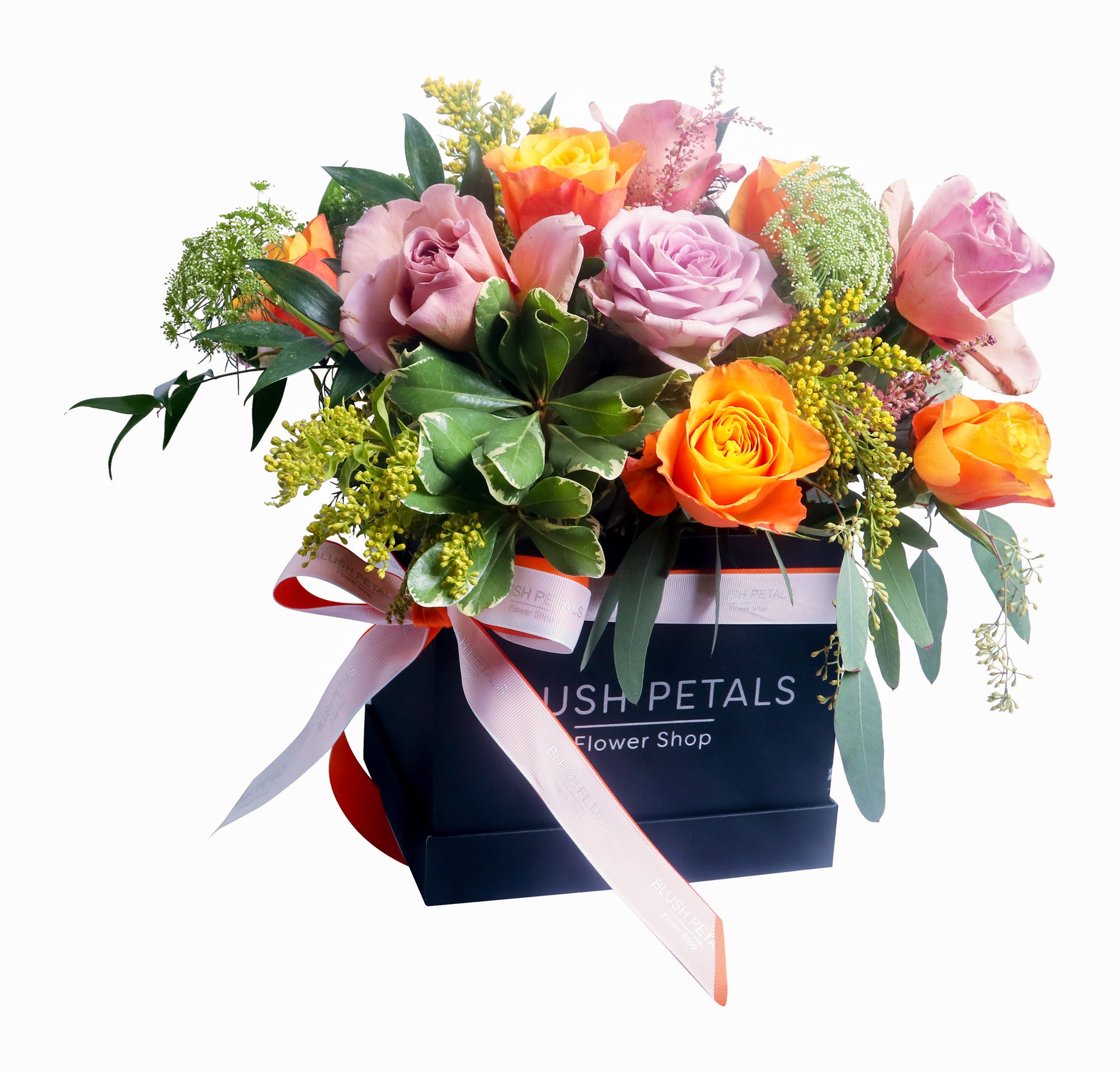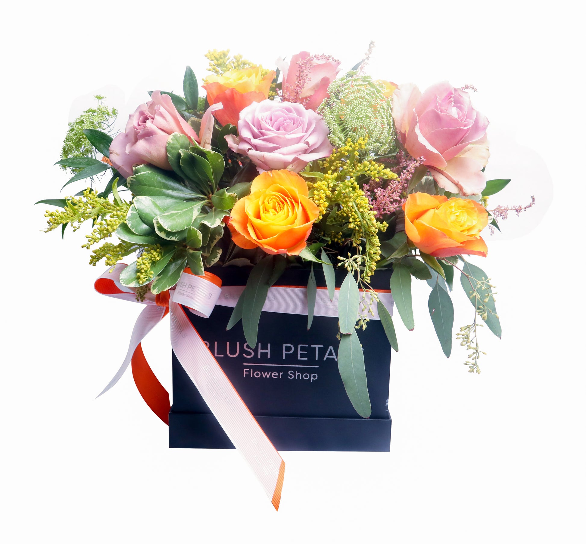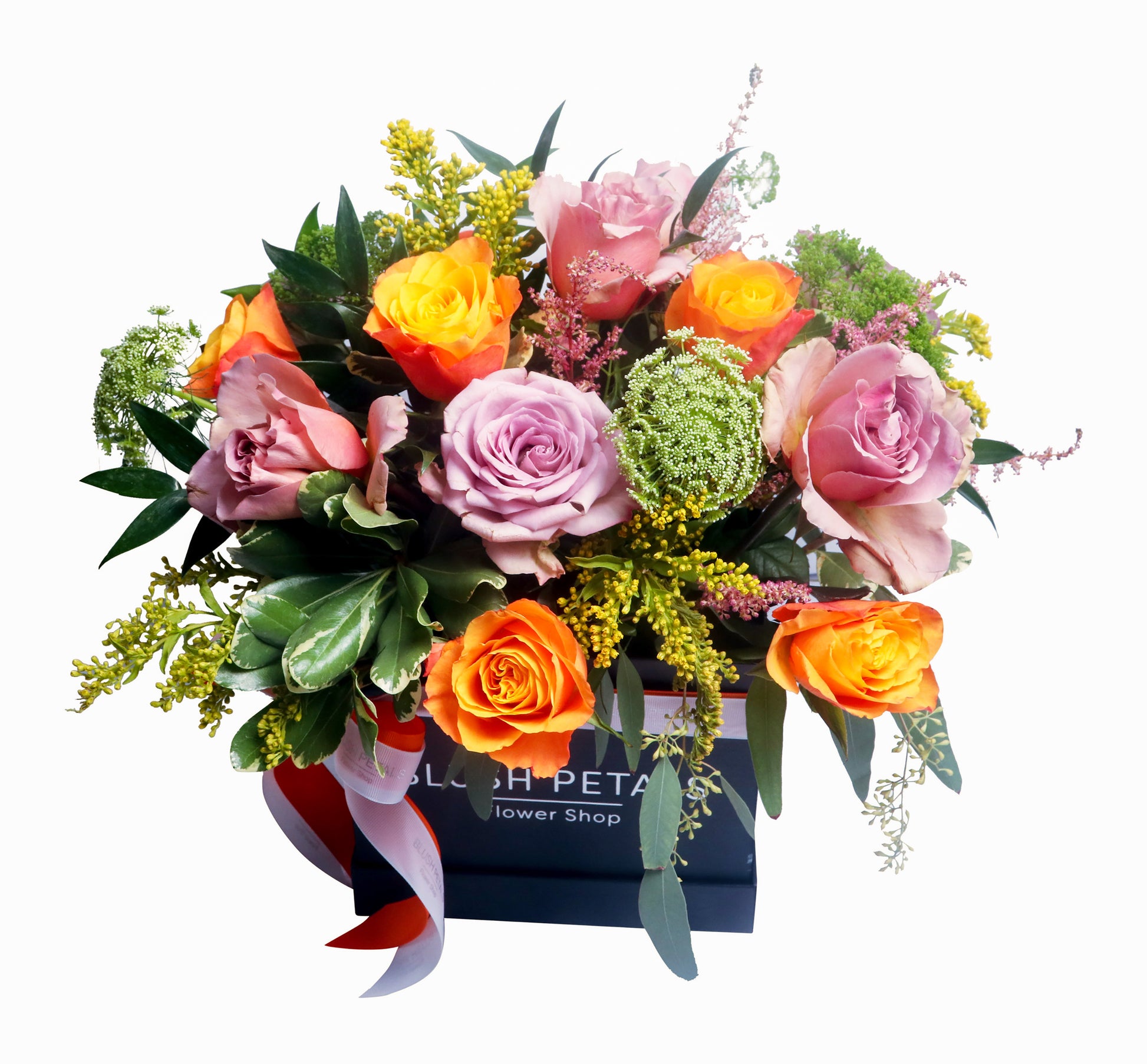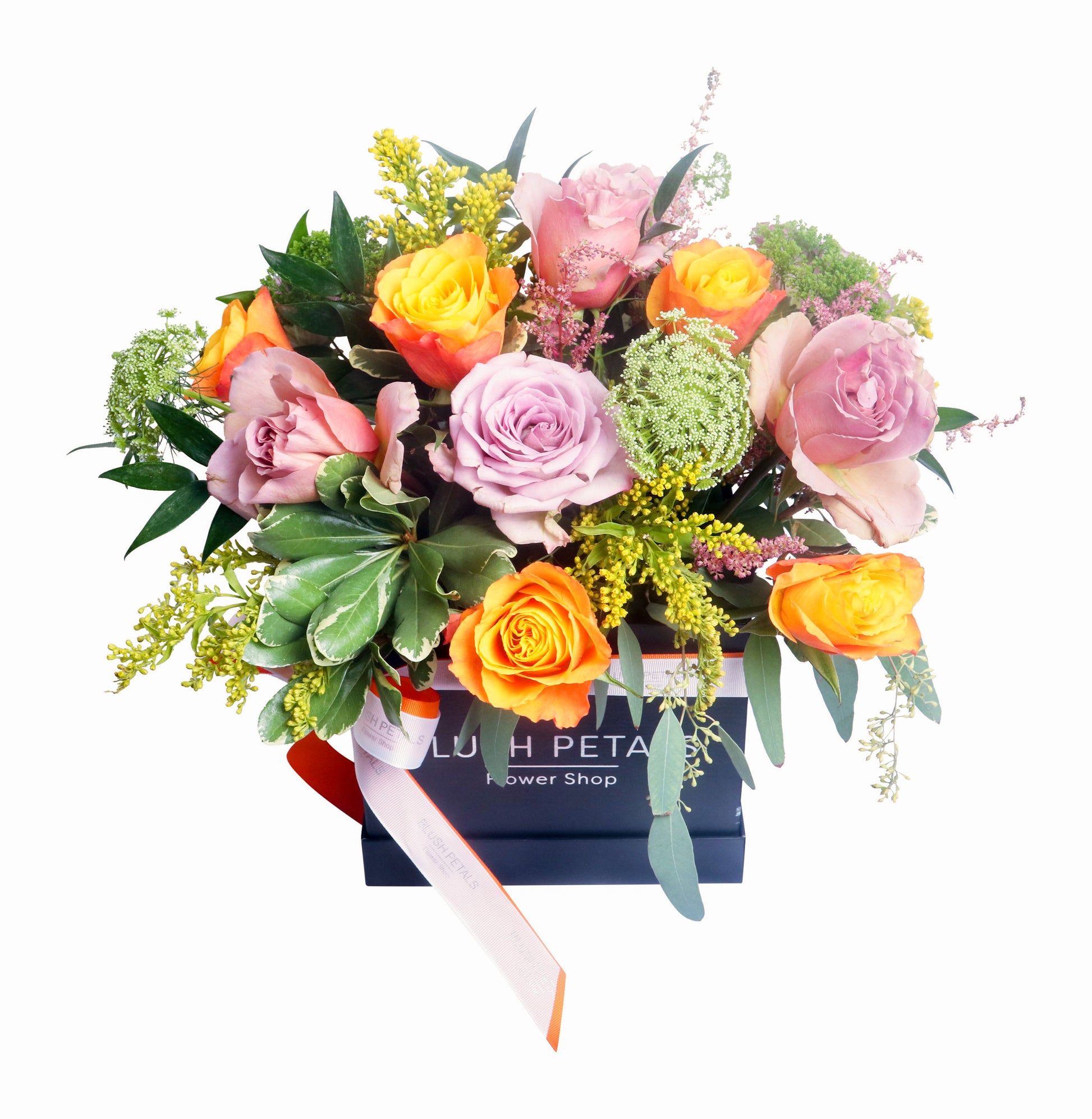 Honor their special achievement with the Superstar Box, a stunning graduation flower box featuring elegant purple roses, radiant ammi blooms, and the unique charm of café latte roses. Accented with veronica, solidago, and lush greenery, this arrangement exudes sophistication and celebration. Presented in our signature Blush Petals box, it’s the perfect way to say “Congratulations” in style.