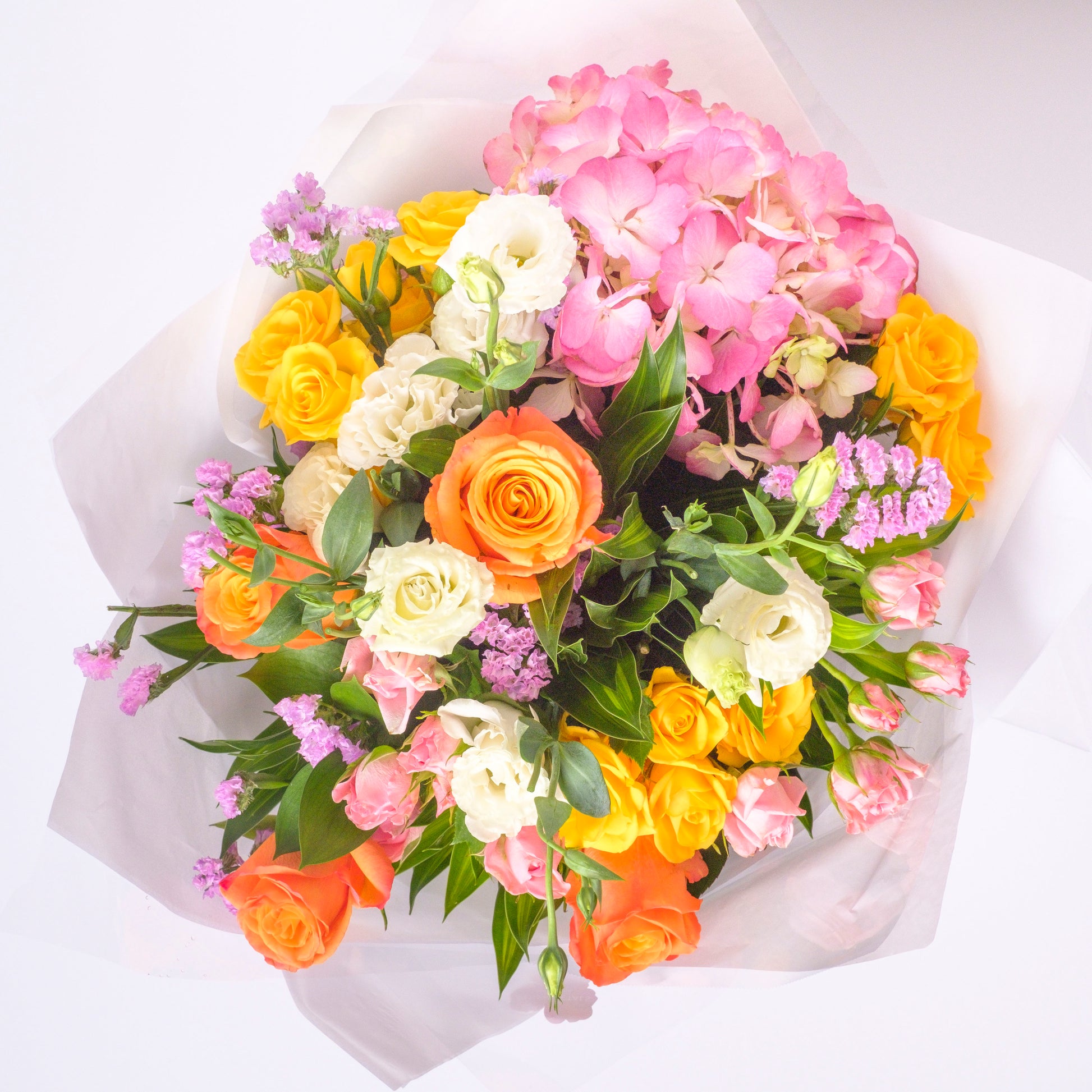 Show your love and appreciation this Mother’s Day with our Best Mom Bouquet – a vibrant and elegant floral arrangement designed to brighten her day. Featuring soft pink hydrangeas, radiant orange roses, cheerful yellow and pink baby roses, delicate statice, and fresh greenery, this bouquet beautifully blends charm and sophistication. Handcrafted with love, it’s the perfect way to say thank you and I love you, Mom. Ideal for Mother’s Day celebrations or any occasion where you want to make her feel truly special.