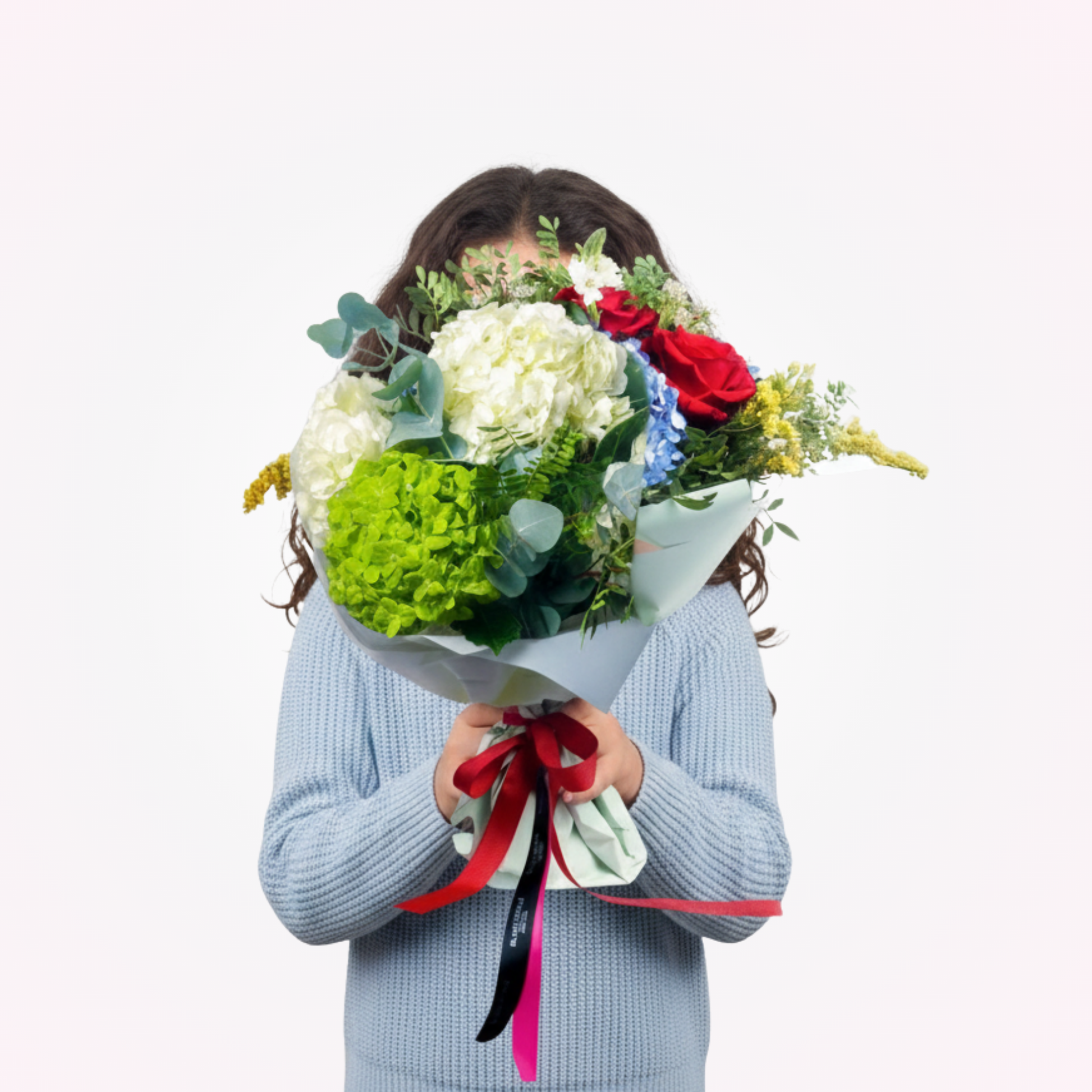 Show Dad he’s the best with #1 Dad — a fresh and modern bouquet featuring 3 crisp white hydrangeas, 1 striking blue hydrangea, and lush greenery with eucalyptus and pistacia leaves. This clean, masculine arrangement is perfect for Father’s Day, combining elegance with a touch of nature. A heartfelt way to say “Thank you” and “I appreciate you.” Same-day delivery available in Dubai.