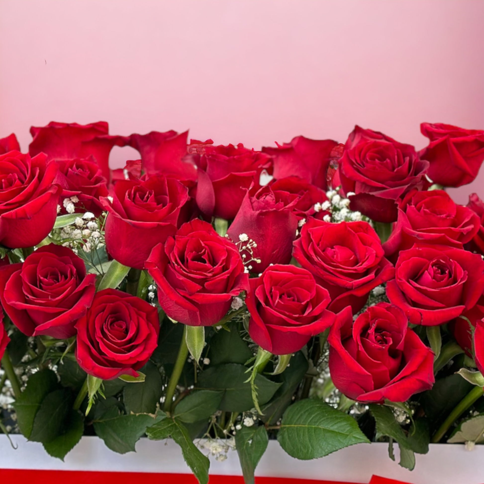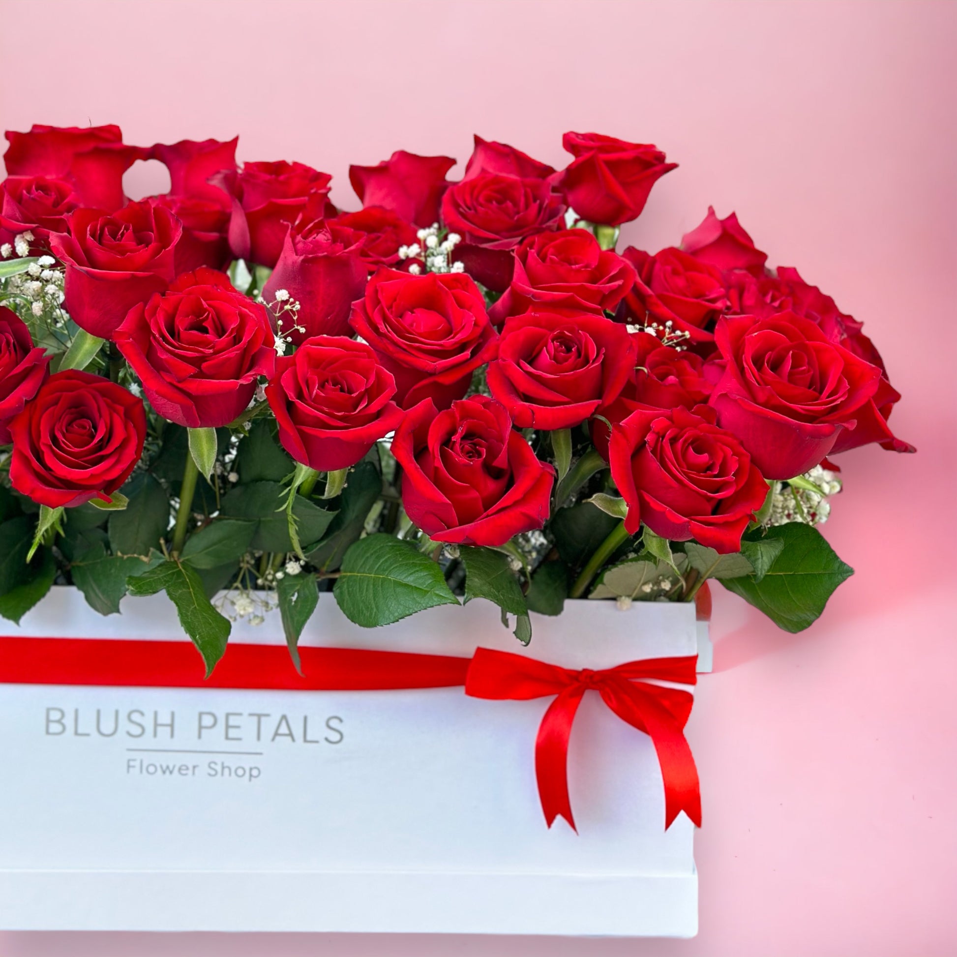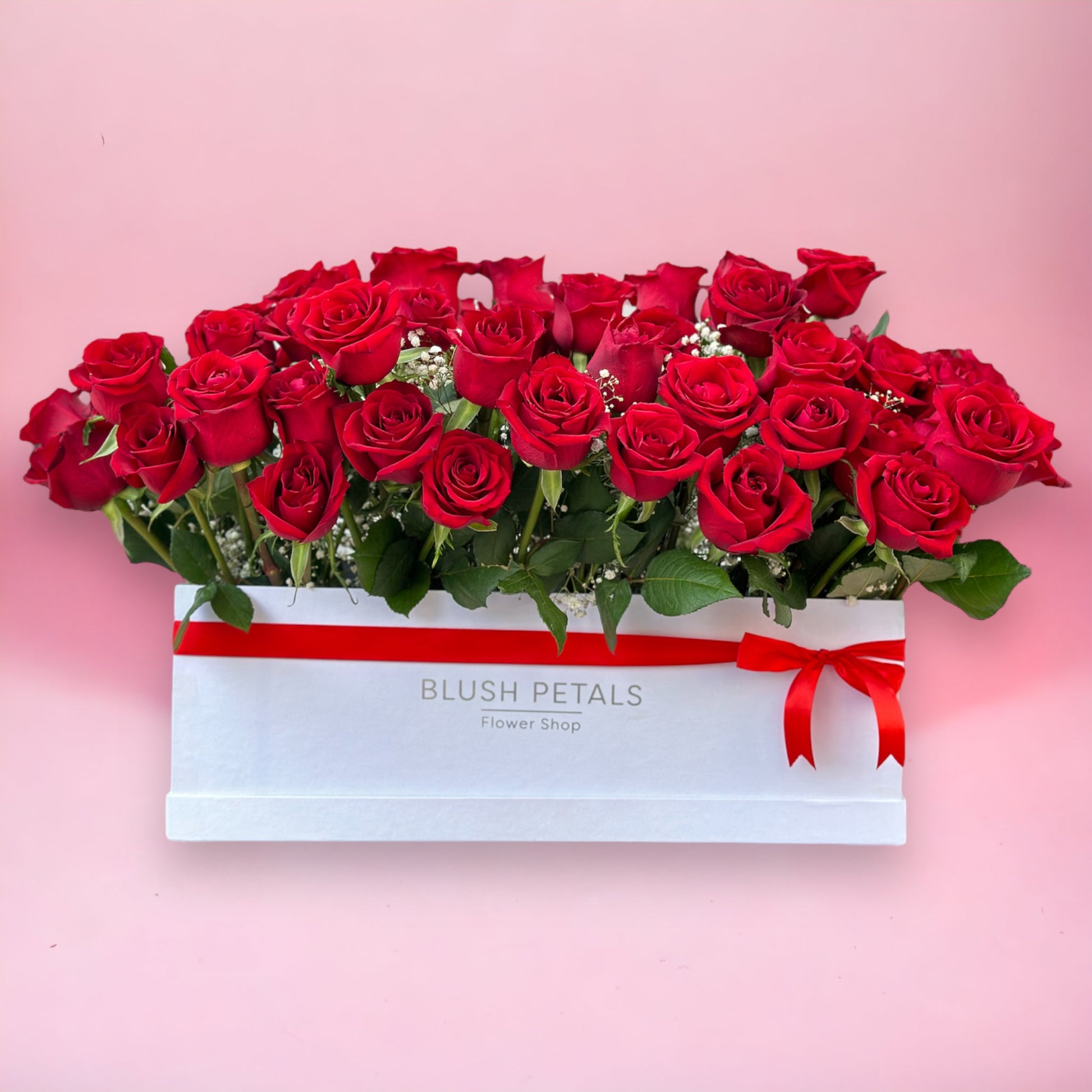 Show your love in the grandest way with our “Big Hug Box”. Overflowing with 60 luxurious red roses and accented with delicate gypsophila, this breathtaking arrangement is the ultimate Valentine’s gift. Beautifully presented in an elegant signature box with a satin ribbon, it embodies romance, passion, and devotion. Perfect for Valentine’s Day, anniversaries, or when words are not enough, this flower box is guaranteed to leave a lasting impression.