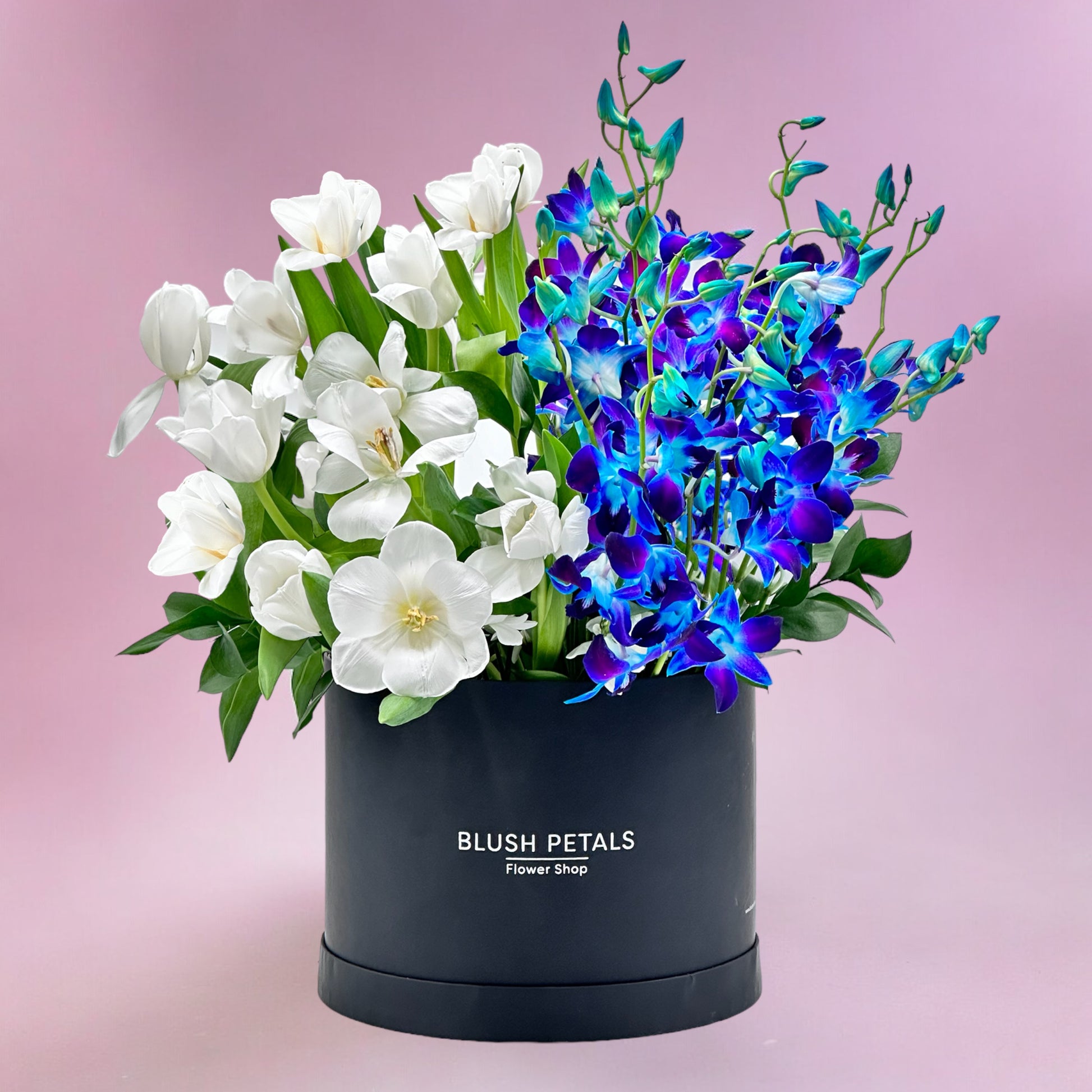 Inspired by the significance of the moon in Eid, this box features white and indigo flowers, mimicking the glow of moonlight.