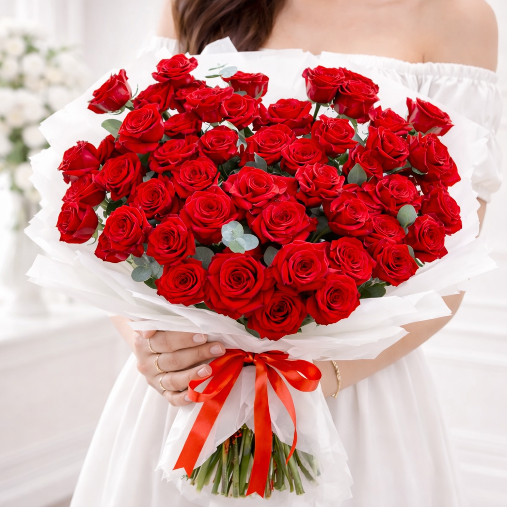 Handcrafted by expert florists at Blush Petals Dubai, each rose is carefully chosen for its deep color, freshness, and long-lasting beauty. Perfect for Valentine’s Day, proposals, anniversaries, or milestone celebrations, this bouquet symbolizes passion, devotion, and grand romance.