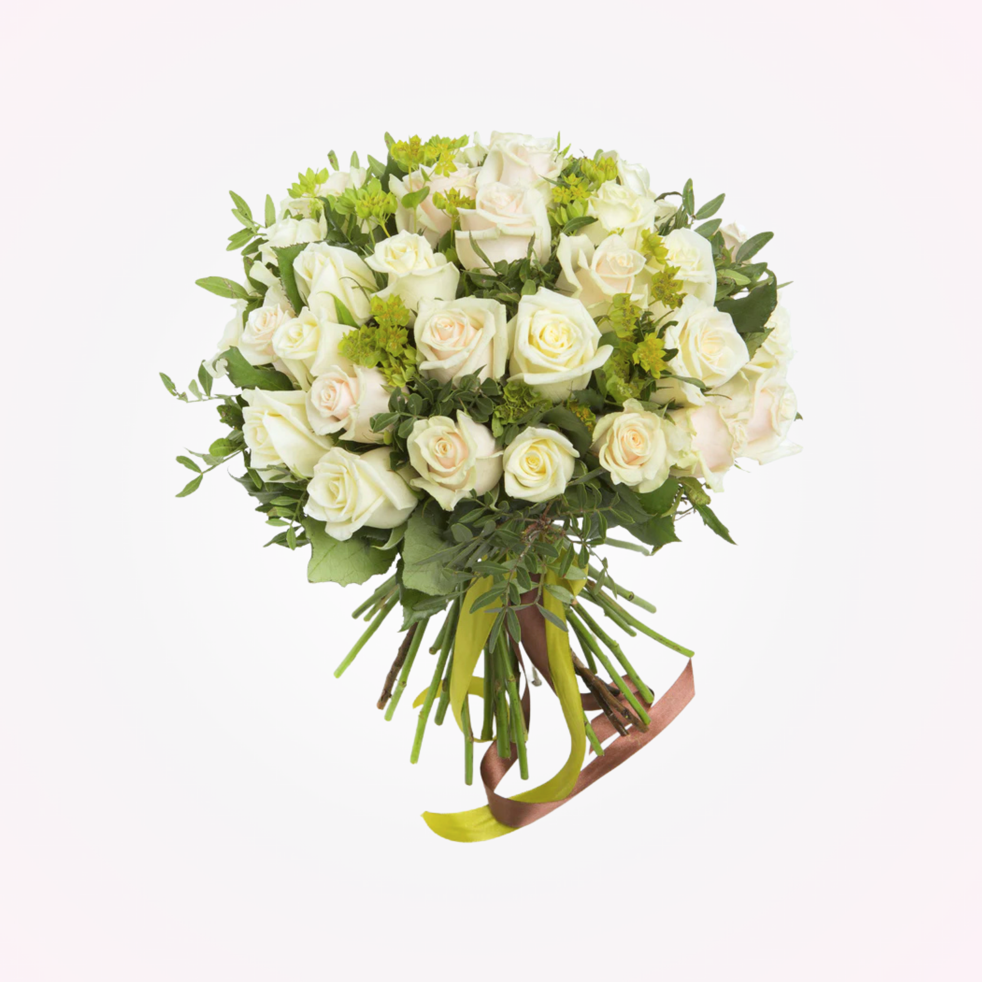 Celebrate special moments with Our Story, a classic hand-tied bouquet featuring 30 pristine white roses, fresh pistacia, and delicate solidago. This “thinking of you” arrangement exudes timeless elegance and purity, making it ideal for anniversaries, heartfelt gestures, or simply to brighten someone’s day. Handcrafted with care, it’s the perfect way to say “you matter” in the most graceful way.